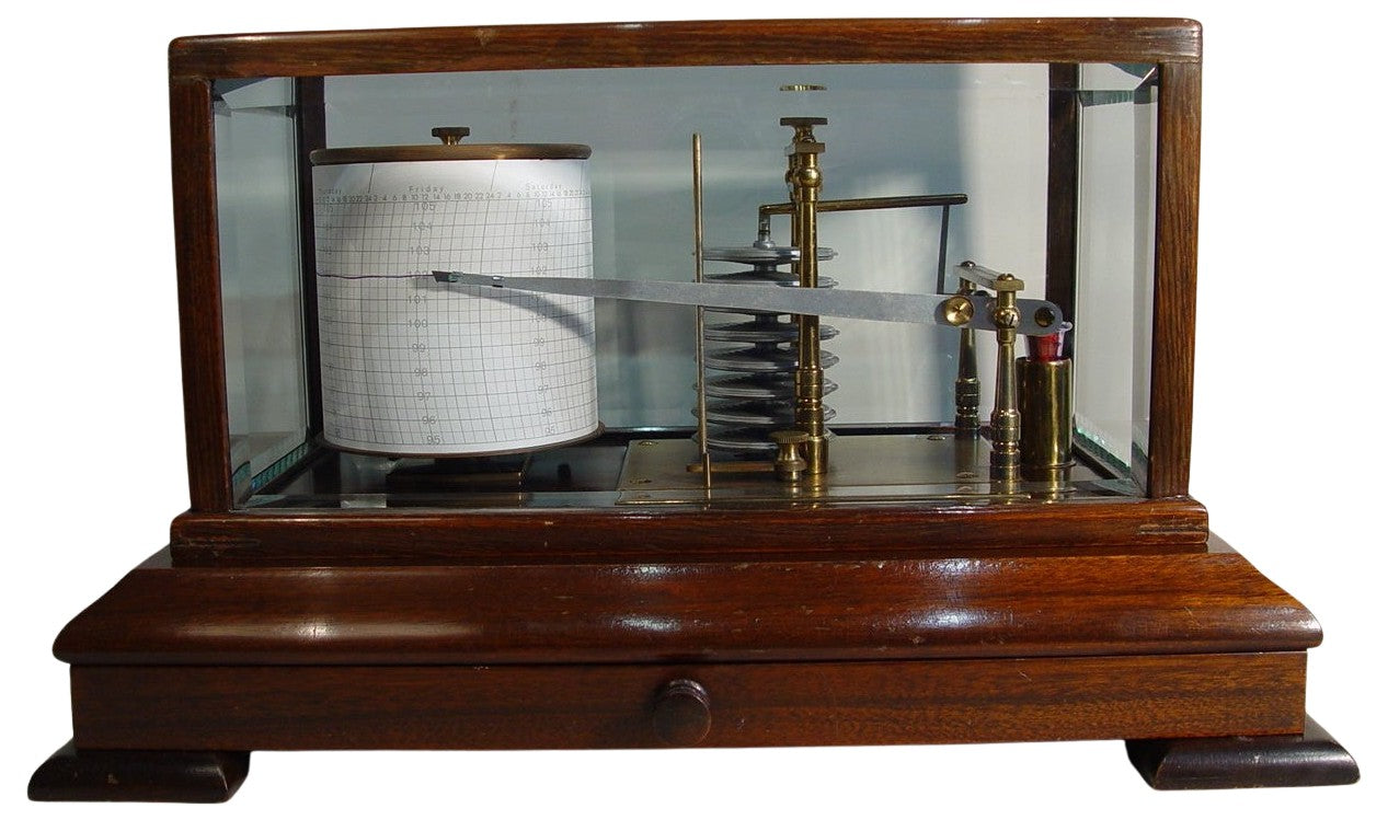 A 1920's Mahogany English Barograph With Chart Draw And Ink Bottle By John Davis, London