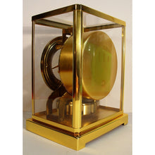 A 1960’s Jaeger Le Coultre Classic Model Swiss Atmos Clock With A Roman Dial Box And Papers, the 526 calibre movement with a round type white chapter ring dial, 4 applied gilt Roman numerals and 8 applied gilded hour-dagger markers, blued tip dagger type hands, the gold plated and lacquered classic case with front opening door, serviced and guaranteed,