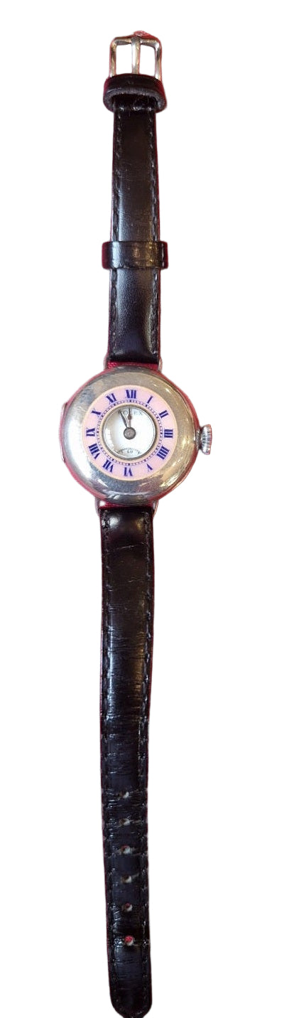 A stunning ladies silver half hunter wristwatch with gilloche enamel