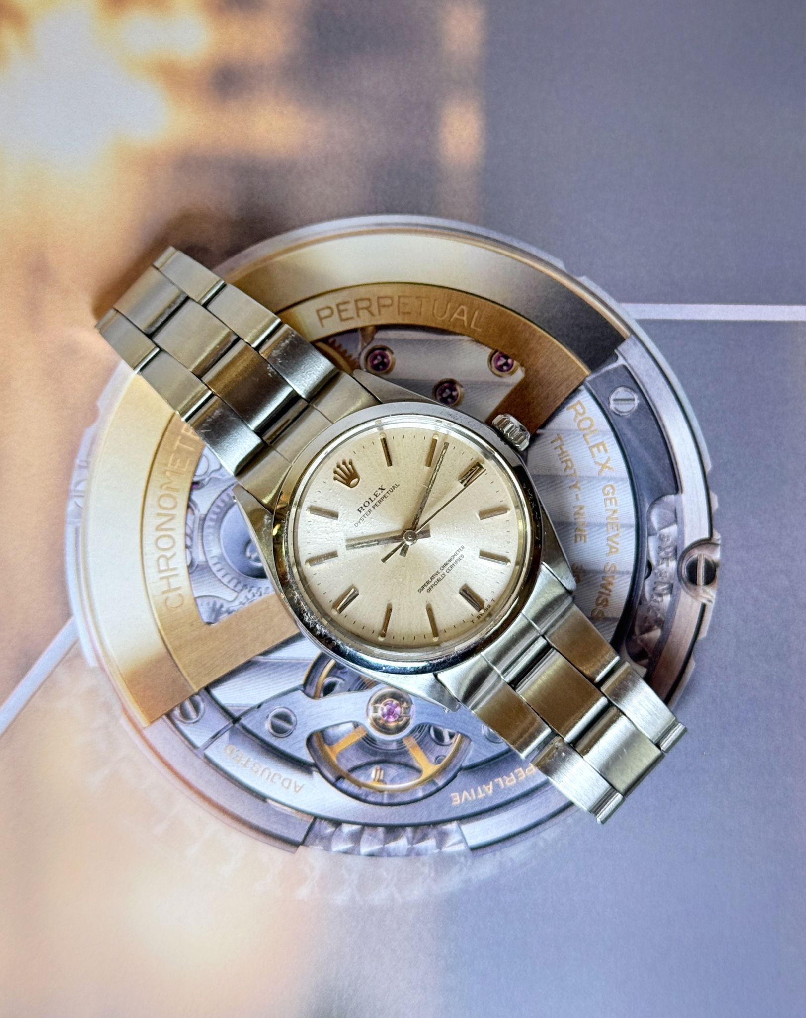 The watch is powered by the Rolex Calibre 1560 automatic movement, a 26 jewel calibre built with a Breguet hairspring and known for reliable performance. This reference is often praised for its straightforward design, durability and comfortable proportions, making it a perfect and underrated entry into vintage Rolex collecting.